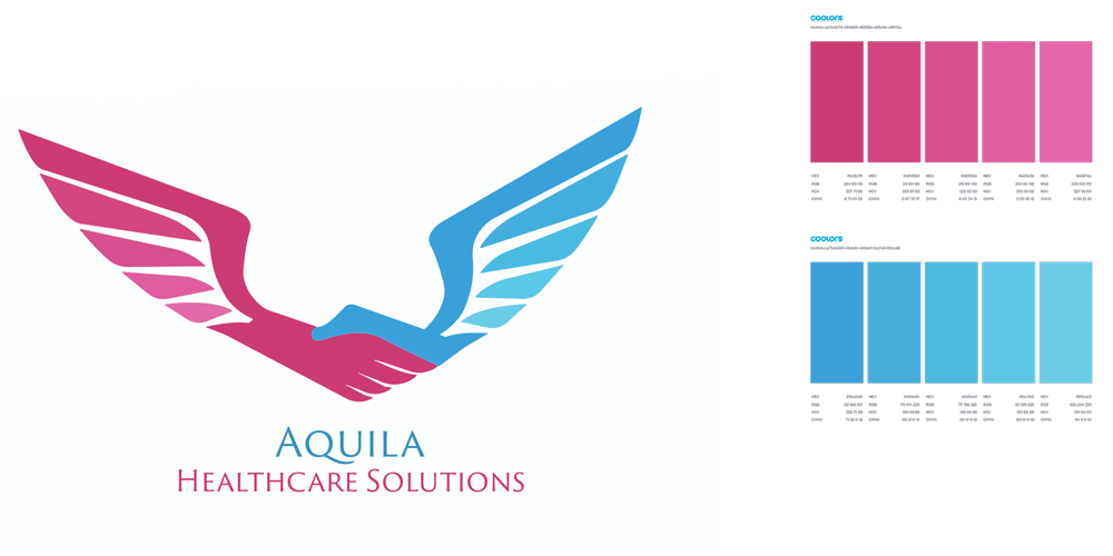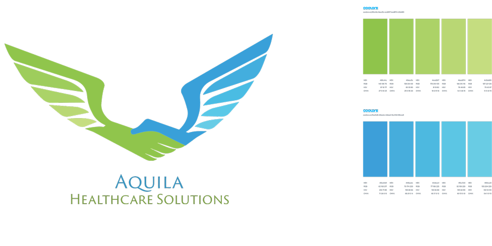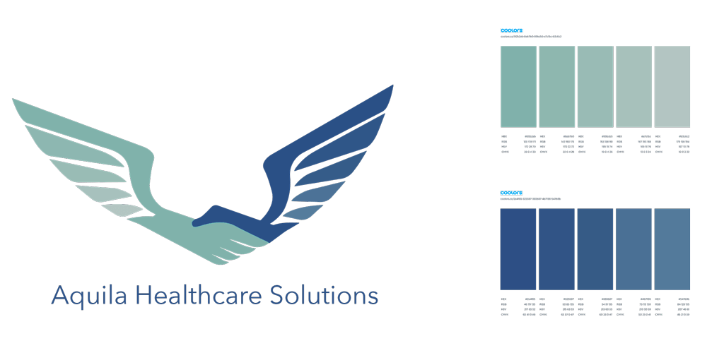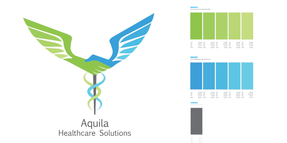 Logo development for a medical company including color, gradient, and typography explorations.