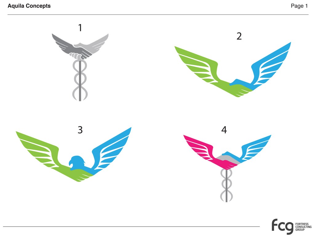The client selected one of the initial concepts but requested additional versions incorporating a caduceus symbol. After reviewing the existing iconography, I redesigned the caduceus to improve clarity and visual balance. The updated symbol was then integrated into several logo variations, which were presented as a revised concept set for the client.