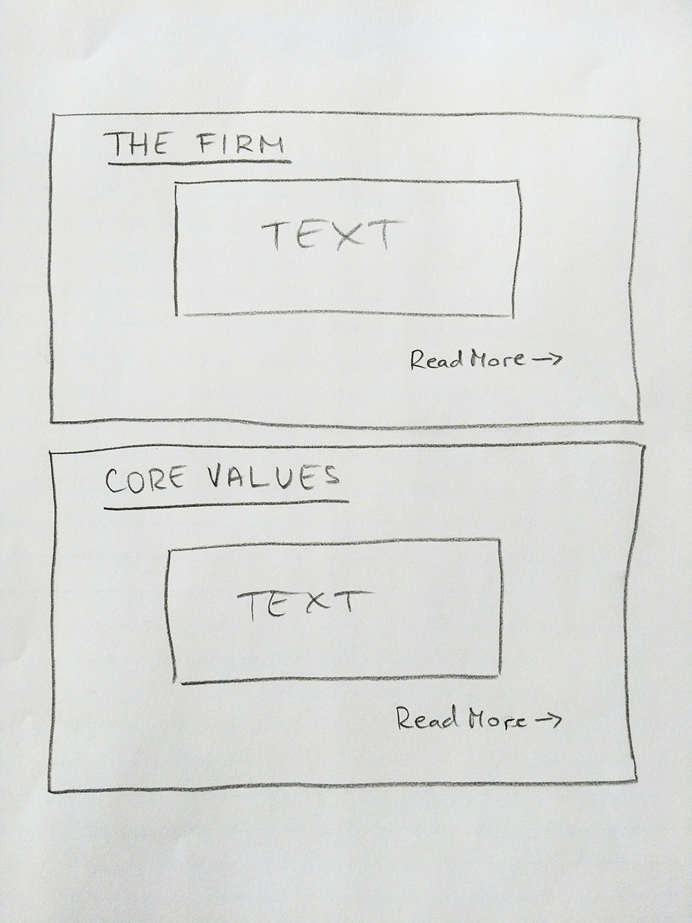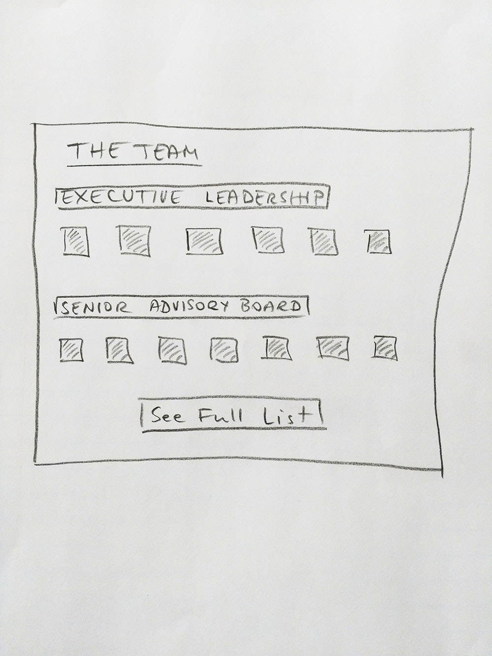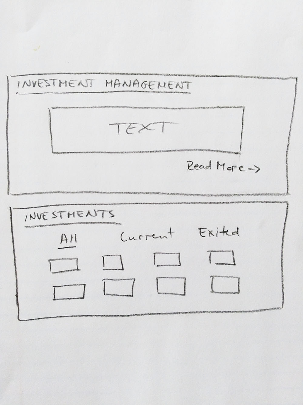 Below you can see the wireframes for all of the website redesign pages that I created in Sketch, including the Home page, as well as the Team, Investments, and Contact pages.