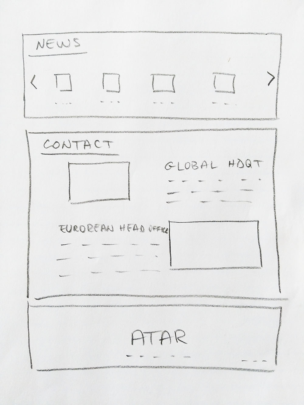 When I was given the task to create a wireframe for a redesign of the ATAR website, I started doing online research and finding similar businesses and looking at their websites. I found a few that inspired me. I drew some sketches of the layout of the new website design.