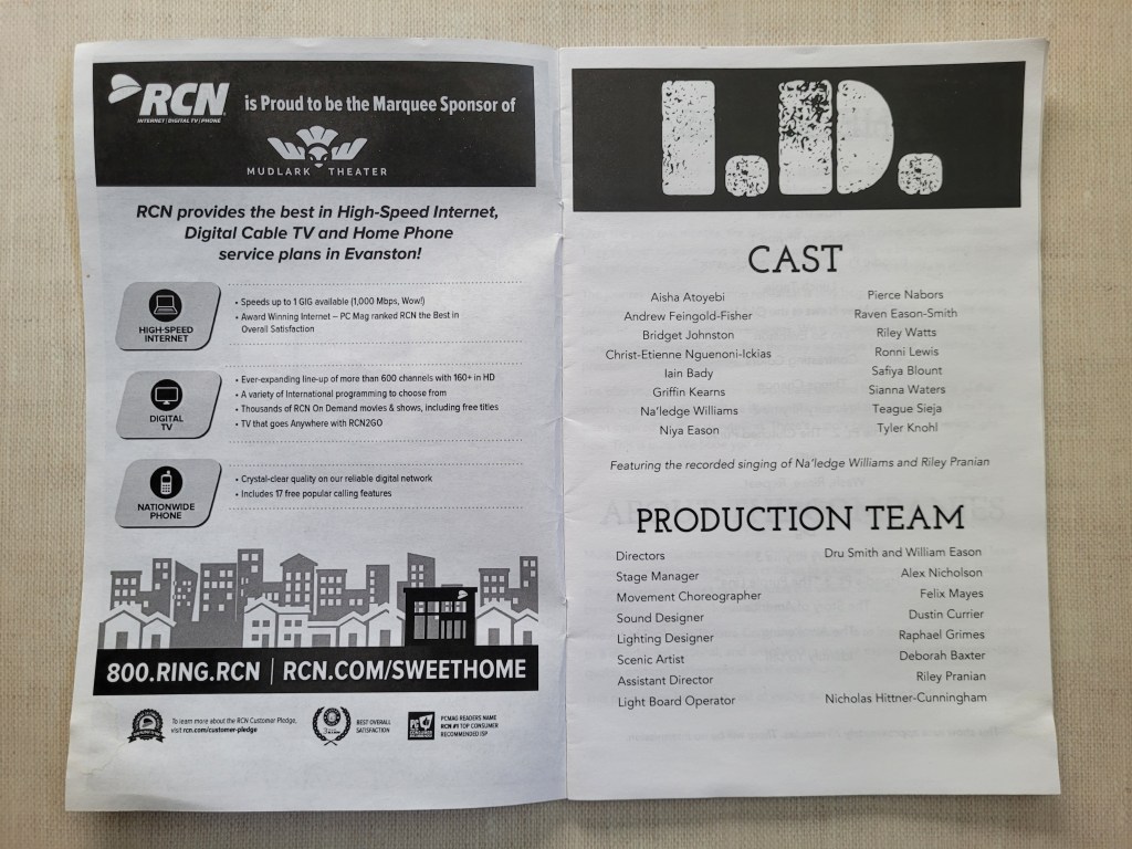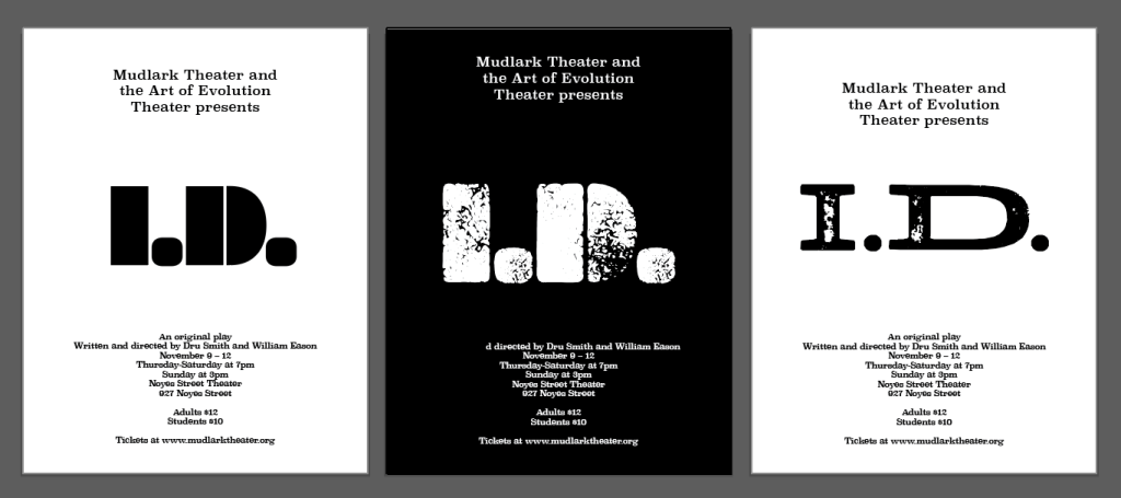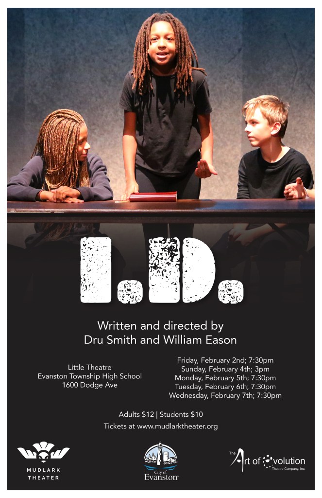 I.D. was a youth-centered theater production exploring themes of identity, race, ethnicity, and bullying within the Evanston community. I was commissioned to design the key promotional materials for the show, including the primary poster, program cover, Facebook banner, and postcard.