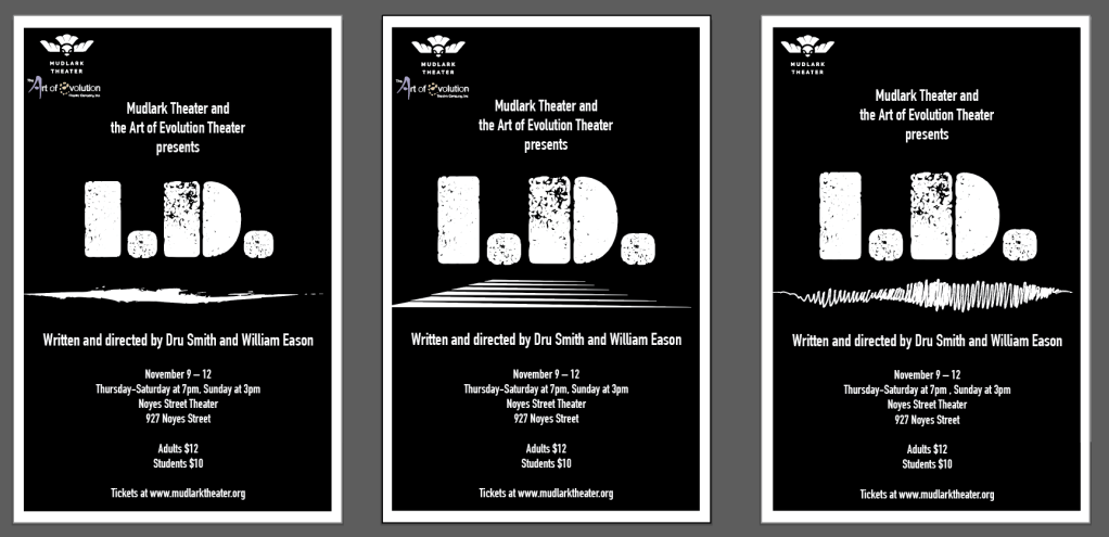 When the City of Evanston sponsored a second run of performances, the campaign was expanded to include photography from the production. I adapted the visual system to integrate imagery while maintaining typographic hierarchy and readability across portrait and landscape explorations.