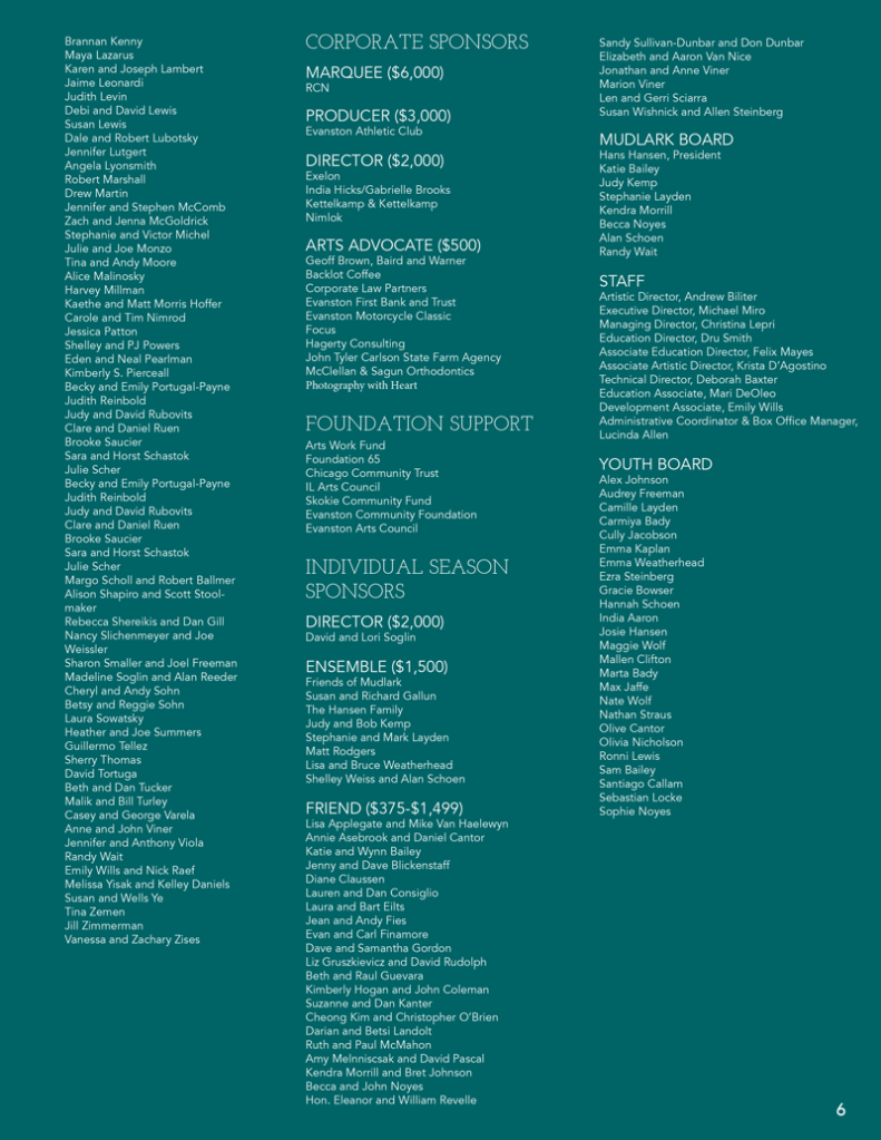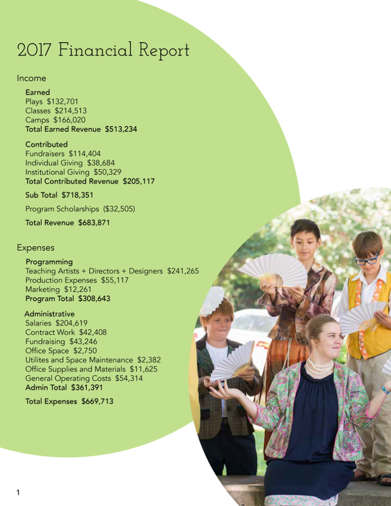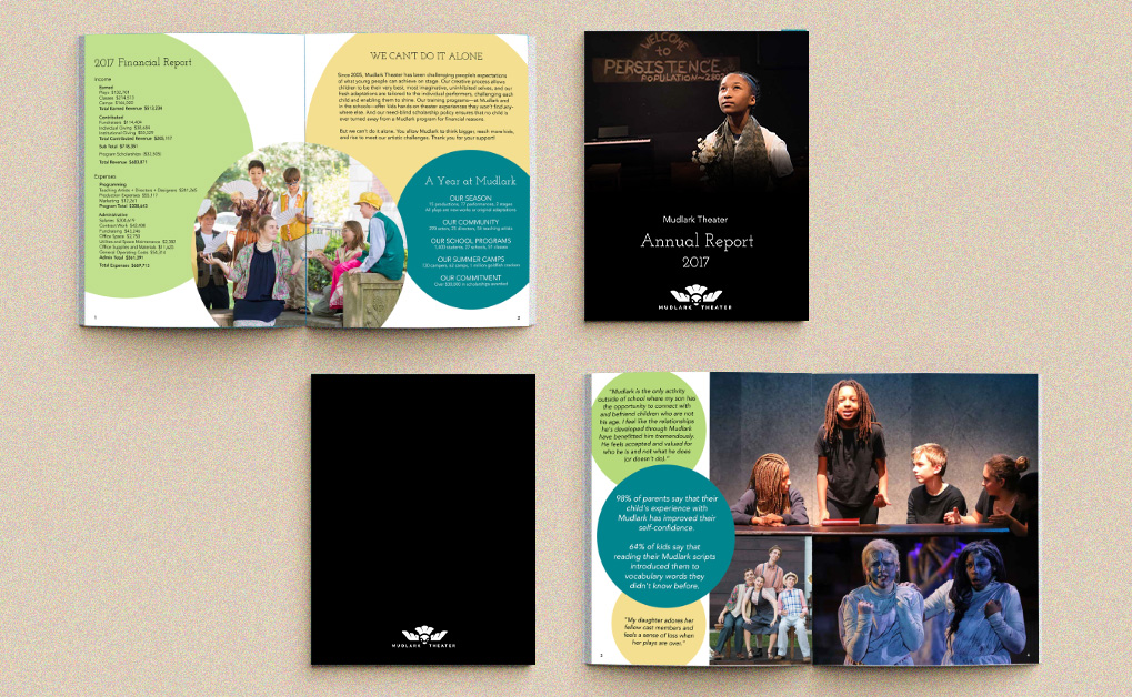 While working at Mudlark Theater in Evanston, Illinois, I designed the 2017 Annual Report, a multi-page publication created to communicate the organization’s activities, financial performance, and community impact to shareholders, donors, and other stakeholders.