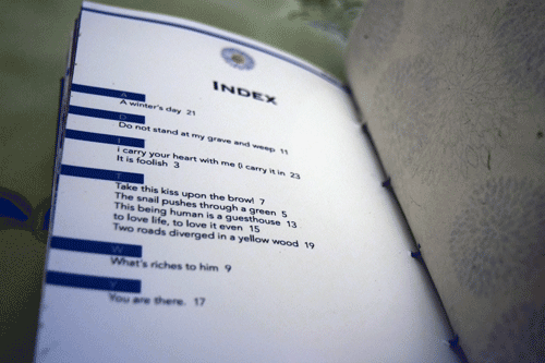 I have been interested in book binding for a long time, and recently I had the opportunity to create my own book and bind it by hand in Japanese Stab Binding style. The theme of the book is Poetry and Art and it includes my own designs along with some of my favorite poetry about life and art. You can see some photographs of the design of my book, as well as the procedure of making it.
